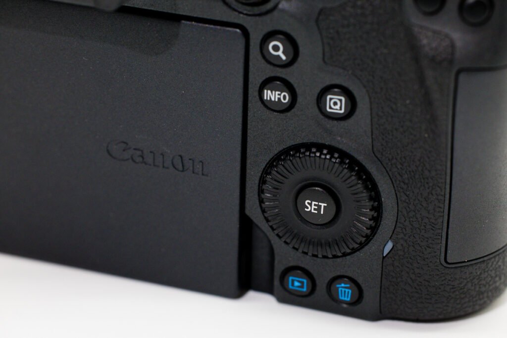 Non, sans mentir. Ce qui est agréable avec Canon, c’est cette rondeur omniprésente partout. Que ce soit sur la poignée, les boutons ou les molettes, tout est doux en main. Même le revêtement a ce côté « rassurant ».